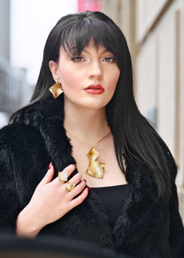 Inspired by her Egyptian roots, Amal works with different kinds of metal and precious stones of to create bold and unique one-of-a kind pieces. Amal’s collections showcase the journey of women and their fearlessness in celebrating their identity and phases of life. As each woman faces her insecurities and transforms those to self love, so does Amal’s jewelry. Amulet By A exudes strength and inner beauty, whether a cuff, earrings or necklace, each piece tells a distinctive story, allowing the wearer to always make a statement. Amal remains committed to keeping the craftsmanship of handmade jewelry alive and is constantly infusing her Egyptian-Canadian identity into her collections.